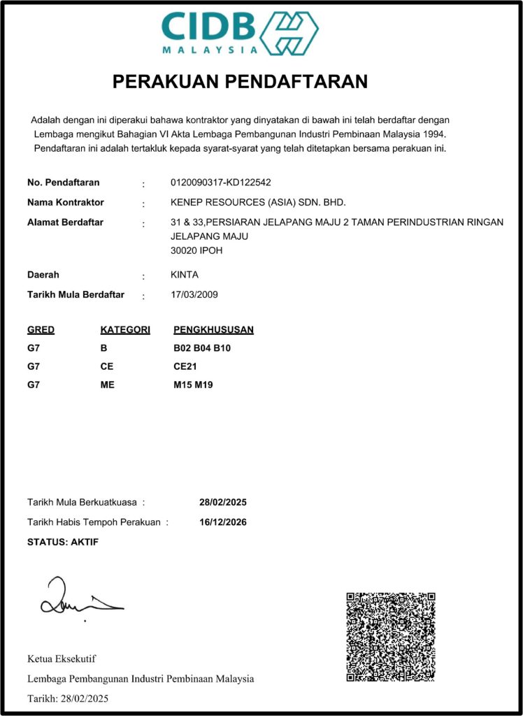 • Sijil Pendaftaran Jururunding EIA